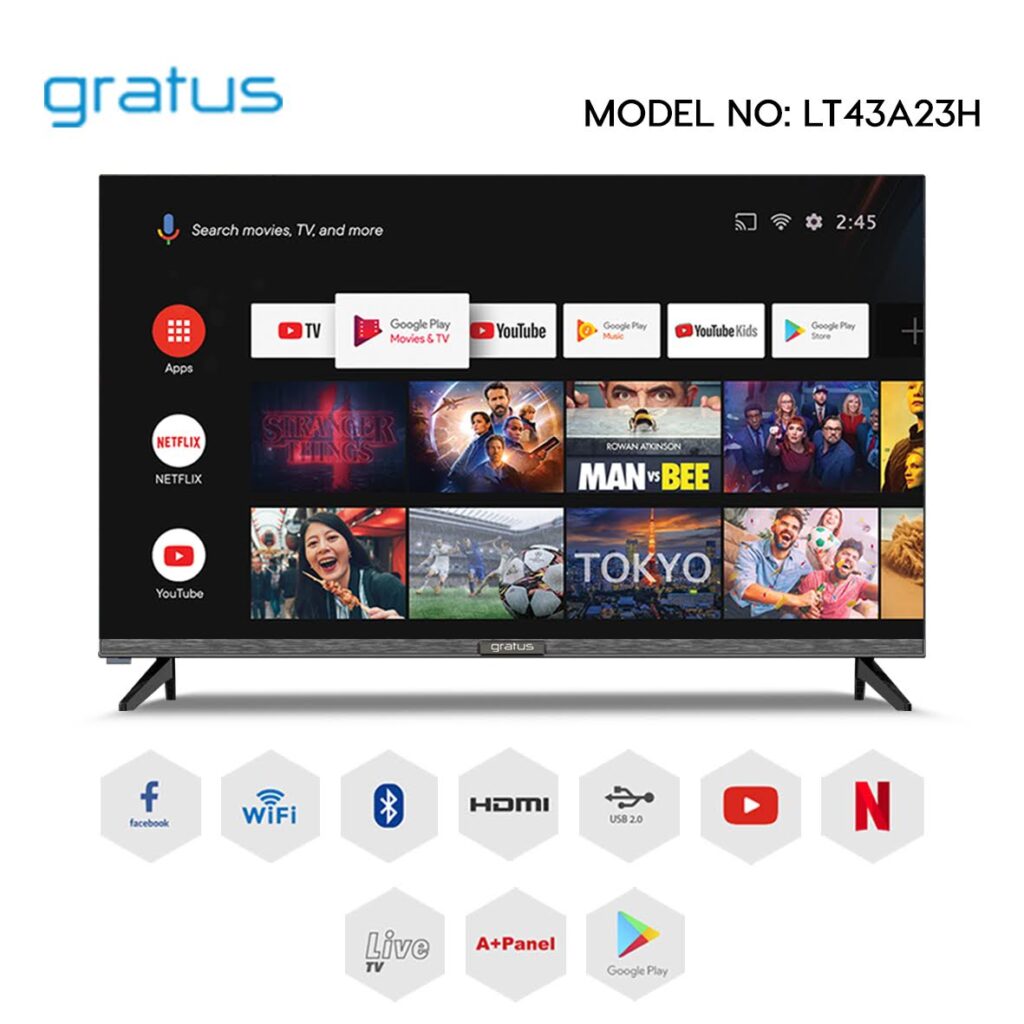 Gratus 32″ Edgeless Smart TV, DVB T2/S2 Built-in receiver, Android Smart 11, 2 USB, 2 HDMI, High Resolution, Superior Sound, Model- GASLED32ACFL