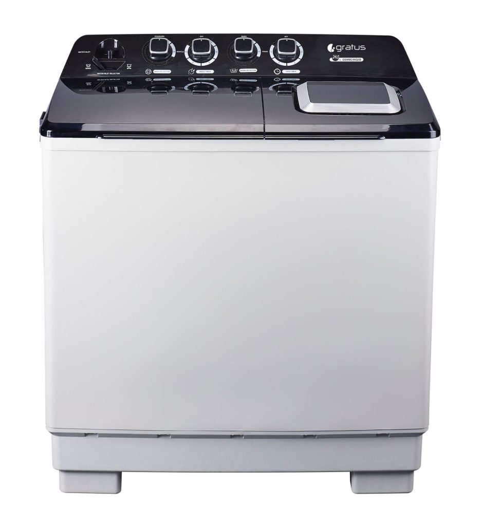 Gratus 24 KG Top Load Semi-Automatic Washing Machine (White/Black), with Lint Filter, Spin-Dry, Model -GSWM24NQ0B