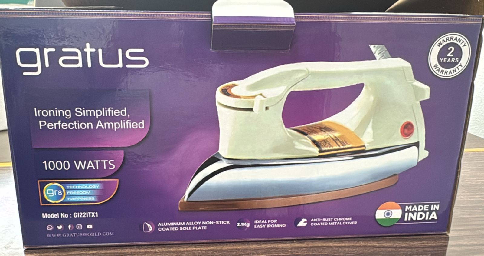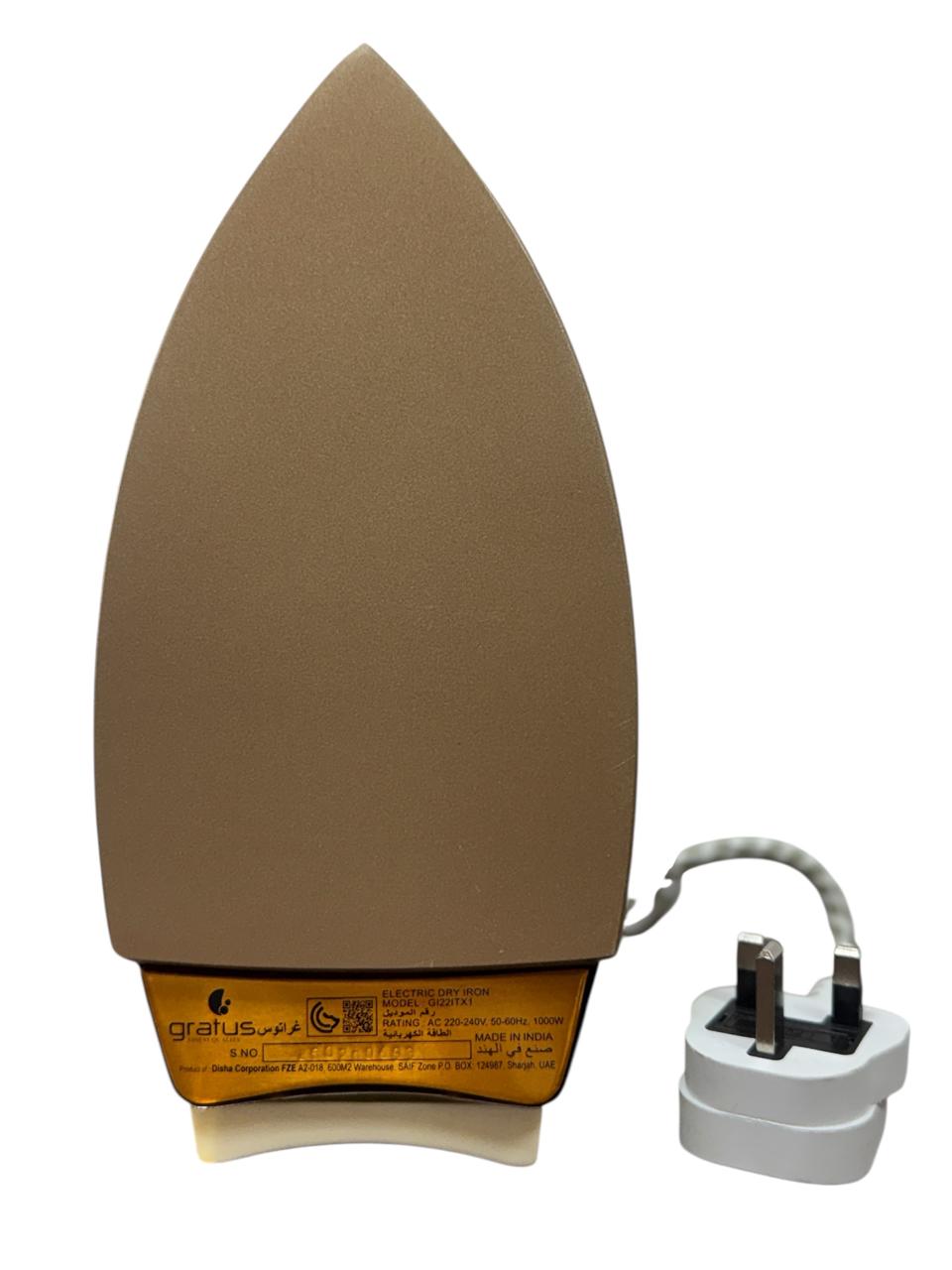 Gratus Dry Iron 1000W – Ceramic Soleplate & Temperature Control, Auto Shut – 1 Year Warranty, Model- GI22ITX1