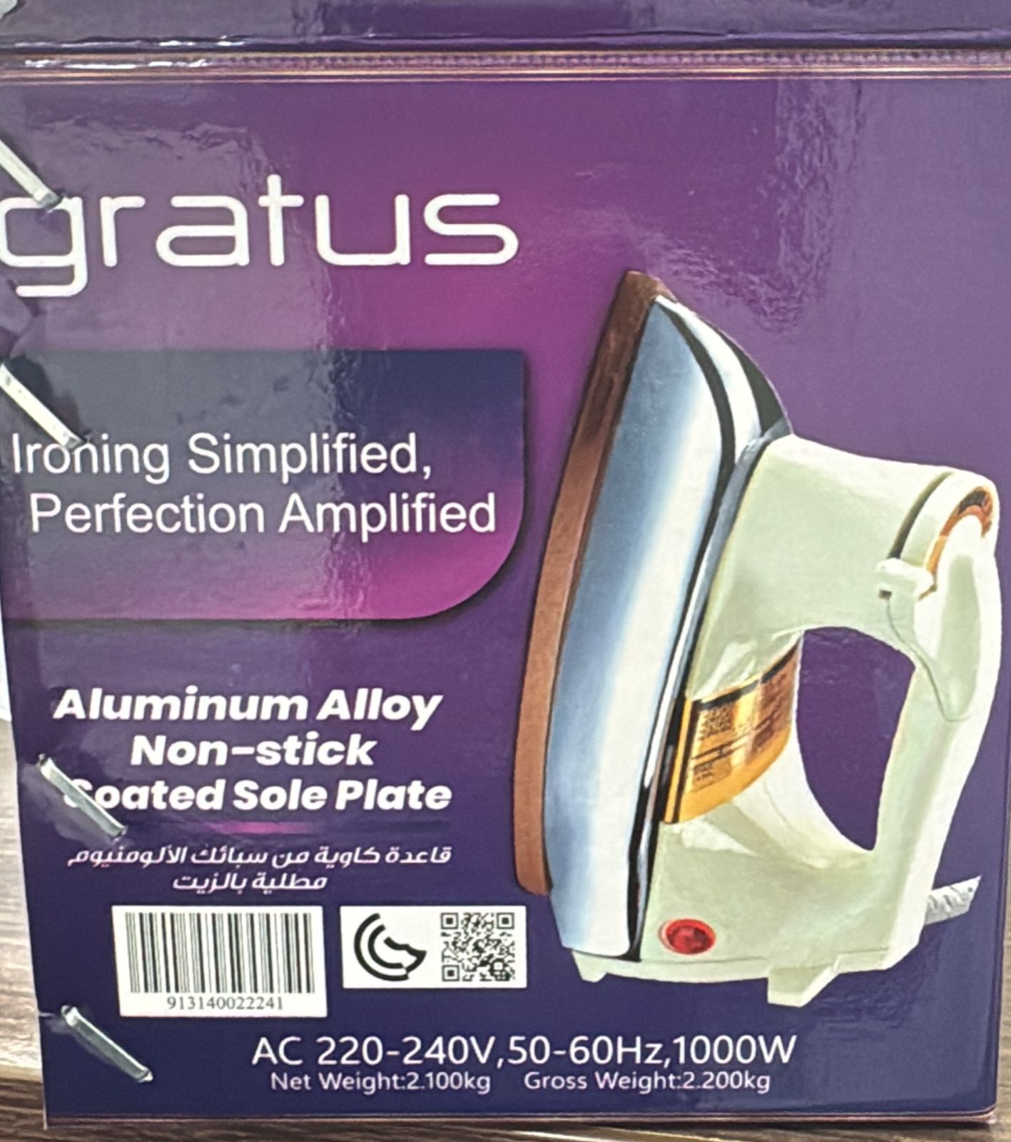 1000W of power. Non-Stick Soleplate.