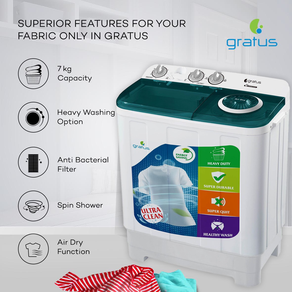 Gratus 10 KG Top Load Semi-Automatic Washing Machine (White), with Lint Filter, Spin-Dry, Model -GSWM10KCDX1