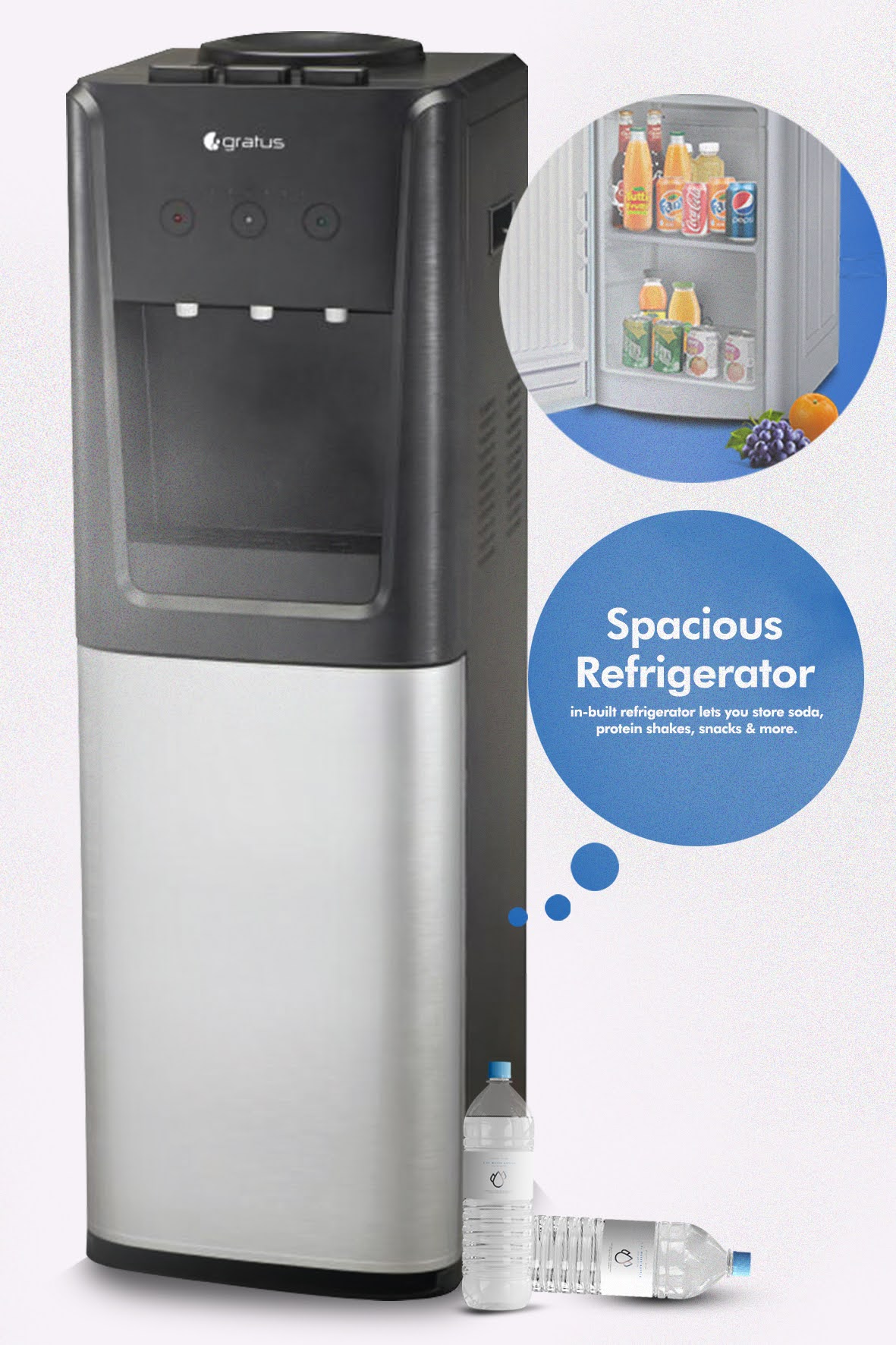 Gratus Hot, Cold & Cold 3 Tap Floor Standing Top Loading Water Dispenser With Refrigerator, 1 Year Full & 2 Year Compressor Warranty, Model-GWD538ACFRMLX